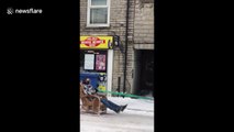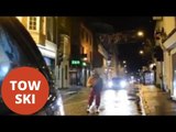 A recent snow day in Raleigh brought a keen man onto the idea to drive a little ski through the streets. M Newman filmed the crazy action in hope of a crash but got to see that the mysterious ski man has a huge skill set.