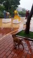 "Não curtiu: cadelinha late para obras do Jaguar Parede na Praça do Papa"