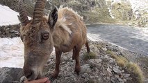 L'incroyable rencontre entre un bouquetin sauvage et un randonneur filmée dans les Alpes