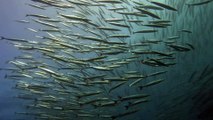 A couple of enormous barracuda approached and circled two divers, repeatedly passing within inches of their faces. With their large mouths full of ominous teeth, they are an intimidating sight. These divers understood that such behavior is usually curiosity and not aggression and the experience was more thrilling than frightening. Barracuda are often attracted to shiny things, like a GoPro camera. This experience was very thrilling for these two!
