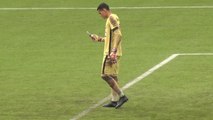 Un gardien de but utilise son téléphone en plein match