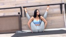 Yoga d'entraînement. Exercices d'étirement de la souplesse des jambes et des fentes. Gymnastique et défi de contorsion.