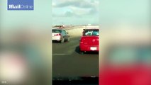 Bizarre accident sees woman fled car on busy motorway before it drives off on its own!!! what's happened?