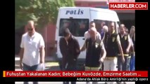 Adana ' da bir kadına zorla fuhuş yaptırdığı ve bir kadına ise fuhuş yapması için evini kullandırdığı iddiasıyla gözaltına alınan hamile kadın, basın mensuplarını görünce şoka girip olay çıkardı....