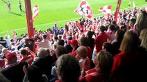 Les supporters de Mouscron se sont donnés rendez-vous à la gare de Mouscron pour rallier Courtrai en train. Ambiance.