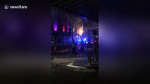 Dramatic footage has emerged of firefighters rescuing a toddler who got locked in a self-service bank in China.