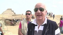 Une statue découverte il y a une semaine dans la banlieue du Caire, et qui pourrait représenter le pharaon Psammétique I, a été dévoilée au public dans la nuit de jeudi à vendredi. (AFP)