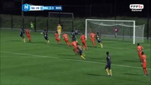 Suite à un long coup franc de SCARAMOZZINO le ballon traîne dans la surface de Chambly mais la frappe de l'attaquant de Laval est contrée et la défense se dégage