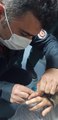 Parmağına sıkışan halkayı itfaiye çıkardı