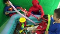 Spiderman children pumping water balloons - Video of colorful balloons