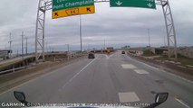 Motorcyclist Hits Guard Rail and Falls Off Overpass