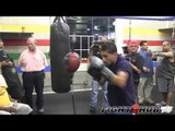 Saul "Canelo" Alvarez prepares for Josesito Lopez as he hits the uppercut bag at his private gym in Santa Monica, CA.