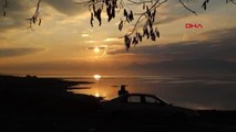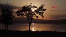 Göl suyunun her geçen gün çekildiği ve kuruma tehlikesiyle karşı karşıya olan Burdur Gölü'nde gün batımı görsel bir şölene dönüşüyor.