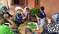 Mardi après-midi 18 avril 2017 à l'accueil des jeunes à l'association Ourika Tadamouneà tnine-Ourika - Maroc - , l'action de récolte des plantes aromatiques et plus précisément l'effeuillage.