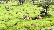 Lion lose when Zebra kicks his head very hard, Wild Animals Attack