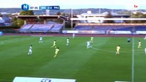Coup franc bien tiré mais la reprise de la tête passe au dessus des buts.