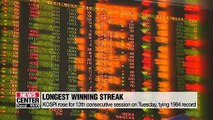 KOSPI rises for 13 consecutive sessions on Tuesday, marking its longest winning streak