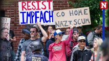 A small group of the anti-fascists wearing black and with their faces covered were seen clashing with officers and at least five people were arrested.