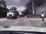 Sauvetage d'une femme prisonnière d'une voiture enflammée par les pompiers !