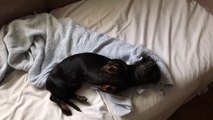 Ce chien a besoin de son coussin pour bien dormir... Trop mignon