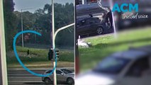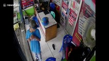 Footage of an alleged thief giving a mobile phone back to his victim after being shouted at by a motorcyclist.