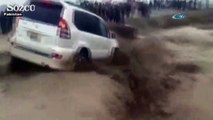 Sel suları nedeniyle bahçede park halindeki araçlar diğer apartmanın bahçesine sürüklendi