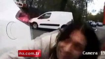 O anlar kameraya böyle yansıdı. Otoparka girmek için bilet alma cihazına yanaşmaya çalışan kadın sürücü, başarısız olunca aracından indi. Bileti almak için butona basan kadın, el frenini çekmeyi unuttuğu otomobili hareket edince yere düştü. Yere düşen kadın otomobilin altın altın kalmaktan son anda kurtuldu. Haber