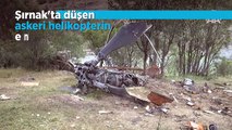 Şırnak'ın Şenoba Tugay Komutanlığı'ndan kalkışından kısa bir süre sonra yüksek gerilim hatlarına takılması sonucu kaza kırıma uğrayan askeri helikopterin enkazı görüntülendi.