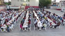 Ceylanpınar Belediyesinin geleneksel iftar sofraları her gün bir mahallede kuruluyor. Yaklaşık bin kişinin ağırlandığı bereket sofraları havadan görüntülendi.