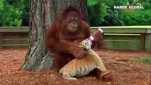 Kaplanlara annelik yapan maymun