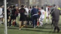 Taraftar ve futbolcular beraber rakip takım taraftarlarına saldırdı