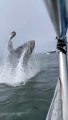 An amazing video has emerged of a humpback whale breaching in front of astonished tourists. The footage, shot off the coast of Manly in Australia on June 22, shows the whale jumping out of the water and falling back in a huge splash.