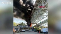 Patlayan yakıt tankeri alev alev yandı.