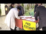 Pavarësisht votës së dhënë nga 140 deputet ne korrikun e vitit te kaluar për miratimin e reformës ne drejtësi, zbatimi i saj duket i vështirë. Vasilika Hysi kryetare e komisionit te ligjeve akuzoi gjyqtaret e prokurorët qe janë kthyer si fole grerëzash për e penguar implementimin e reformës.Per drejtorin e shkollës se Magjistraturës, Sokol Sadushi, Vettingu përcakton se cilët gjyqtare e prokurorë qëndrojnë në sistemin e drejtësisë.Sokol Sadushi: Ne sistem nuk hyjnë me gjyqtar dhe prokuror qe nuk kane mbaruar shkolle e magjistraturës. Nese gjyqtaret nuk e kalojnë testimin atëherë do te bejne nje vit shkolle tjeter ne magjistrature per te ushtruar me pas profesionin e tij. Vettingu përcakton se kush nga gjyqtarët dhe prokurorët qëndron në sistem e drejtësisë, duke i seleksionuar edhe defektet e së kaluarës.Sipas Avokatit te Popullit, vetem ne nje vit jane bere 400 ankime në drejtim të gjyqtarëve e prokurorëve.Igli Totozani: 400 ankime jane bere gjate vitit te kaluar per gjyqtare dhe prokuror te cilët kane zvarritur proceset gjyqësore dhe mosadministrimin e vendimeve gjyqësore. Gjyqtaret jane larg standardeve krahasuar ne ata te Bashkimit Europian. Ndërkohë qe ndaj Avokatit te Popullit ka pasur sulme dhe baltosje gjete procesit te përzgjedhjes se kandidateve per KLGJ e KLP.Një tjetër shqetësim është mosfunksionimi me kapacitet të plotë i Gjykatës Kushtetuese, ku nga 9 anëtarë, një vend është vakant dhe dy te tjerëve ju ka mbaruar mandati.