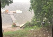 Hail plummeted from the sky during a massive storm in Northeastern Ohio on July 10. Video footage recorded on the steps of the Hilliard Chamber of Commerce show large hail pellets falling from the sky