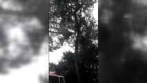 İSTANBUL - Eyüp'te ağaç üzerinde mahsur kalan bir kedi, itfaiye ekipleri tarafından merdiven aracıyla kurtarıldı.
