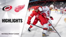 Andreas Athanasiou scored at 1:59 of overtime to lift the Detroit Red Wings to a 4-3 overtime win against the Carolina Hurricanes at PNC Arena on Monday.