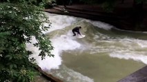 Session de surf en plein munich sur le fleuve ! ( Eisbachsurfen - München )