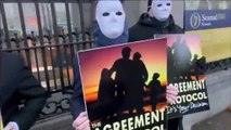 Prime Minister Theresa May discusses Brexit with Irish Taoiseach Leo Varadkar at Downing Street. Report by Mcnallyc. Like us on Facebook at http://www.facebook.com/itn and follow us on Twitter at http://twitter.com/itn