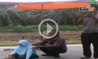 Rakaman itu menunjukkan wanita terbabit, yang berpakaian putih, sedang melintas jalan sebelum tercampak akibat dilanggar motosikal yang ditunggang lelaki yang tidak dikenali.