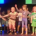 Pendant une kermesse de fin d'année, un petit garçon chante une chanson avec ses camarades de classe ! Il met du coeur à l'ouvrage et il fait même une petite chorégraphie ! Mignon !