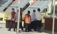 Dari Foto Biro Pers Sekretariat Presiden, rombongan Presiden Jokowi tiba di Bandara Sultan Mahmud Badarudin II Palembang pada pukul 16.45 Waktu Indonesia Barat.
