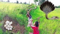 Terrifying !! My Daughter and Son Catch Two Big Snakes in My Farm