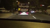 Kadıköy Bağdat Caddesi'nde kaykay kullanan 2 gencin tehlikeli yolculuğu, vatandaşlar tarafından görüntülendi. Gençlerin bir otobüsün arkasına tutunarak ana yolda ilerlemeleri ve hız limitlerinin 60-70 kilometrelere yükselmesi dikkat çekti.