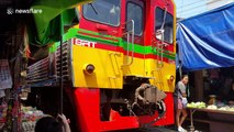 Incredibly close shave as train skims past market stalls