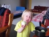 Boy, 1, eats an onion like it's an apple