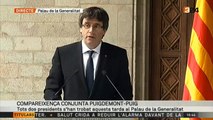 Catalonia's deposed leader Carles Puigdemont is calling for democratic and peaceful opposition to the Spanish government's direct rule of the region.