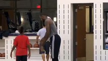 LeBron James' 10-year-old son hits one-handed half court shot during cavs practice!