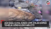 Karaman'da ağzı bağlı çuval içinde çöp konteynerine atılan köpek, çöp kamyonuna aktarılırken temizlik görevlileri tarafından fark edildi.