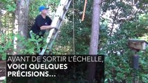 Ce jeune chat a réussi à grimper à plus de 3 mètres de haut dans un arbre. Mais comment va-t-il en redescendre ? Telle est la question !